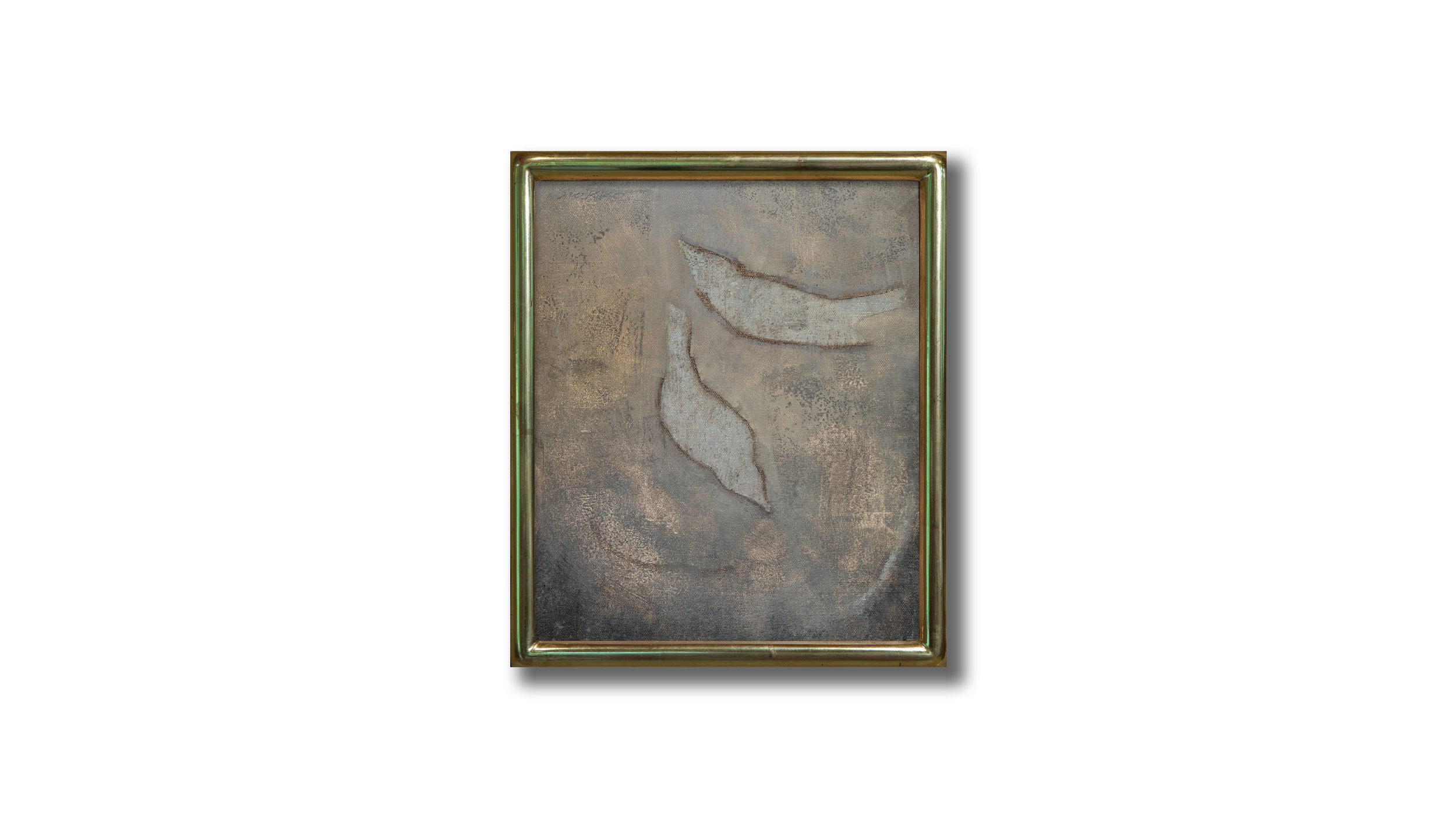 Through a process of layering, scraping, and abrasion, I work to reveal surfaces that feel both weathered and alive. What remains is an image less descriptive than remembered—an evocation of time, movement, and presence. The painting is presented in a handcrafted walnut frame with a gold leaf face by Guido Frames, whose craftsmanship complements the warmth and luminosity of the work.